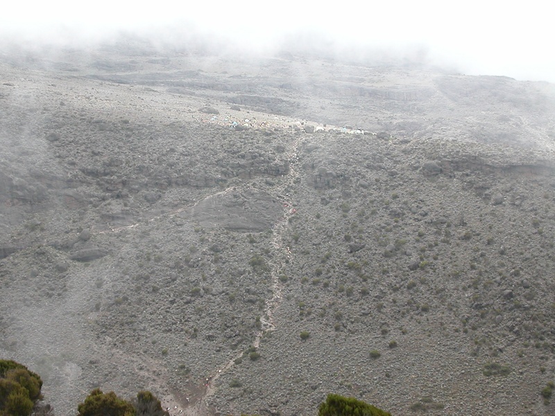 In the distance we can already see Karanga Camp. We're already on the right altitude, but who put that valley there?