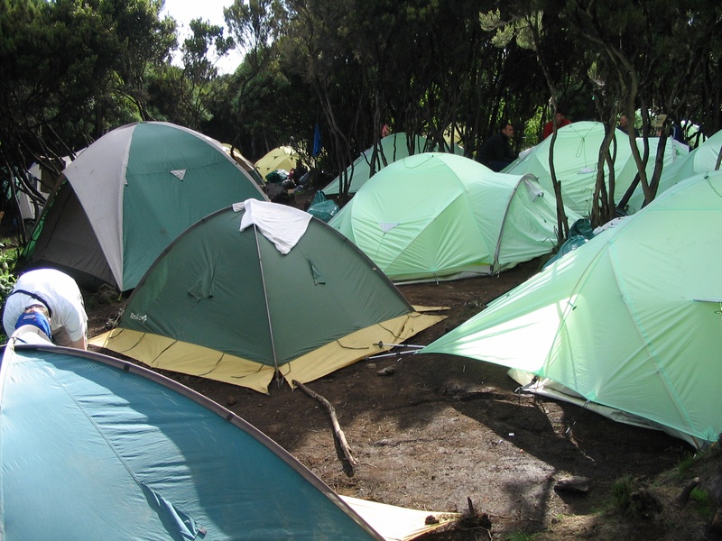 It's a little crowded at Mweka Camp, for our final night here. Luckily, even the British here are disciplined mountaineers: the 'pub' closes at 10pm.